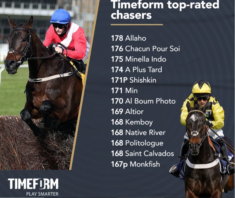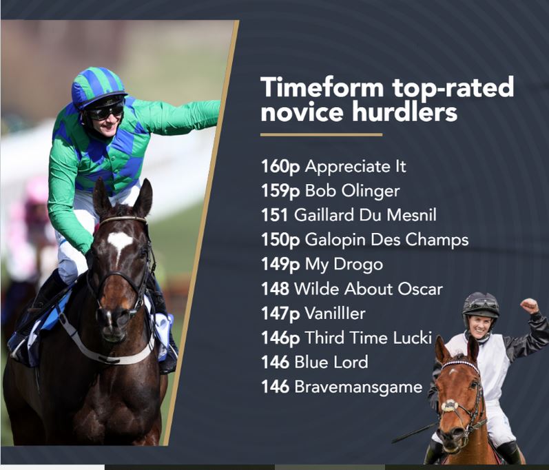 So, we have the unusual situation of the Arkle winner achieving a higher level of form than the Champion chase winner, though that isn’t unprecedented as it also happened in 2015 when Un De Sceaux‘s Arkle figure of 168 surpassed the 167 achieved by Dodging Bullets in the Champion Chase.