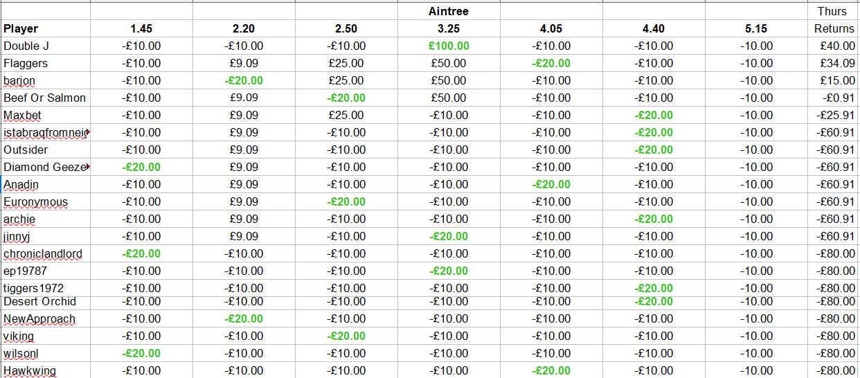 [/FONT][FONT=Verdana, serif]One selection each day in each race at Aintree from Thursday to Saturday, with [/FONT][FONT=Verdana, serif]one selection each day noted as a nap.[/FONT][FONT=Verdana, serif] [/FONT][FONT=Verdana, serif]