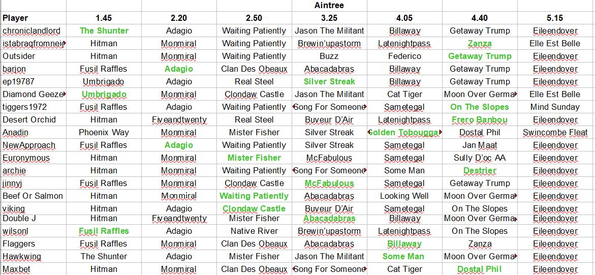 ***** On Saturday you may nominate two selections for the Grand National. *****