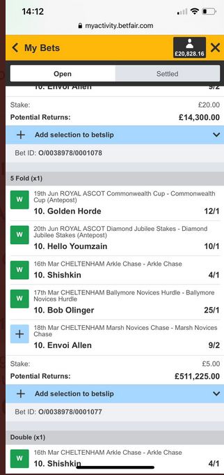 I watched Joseph O’Briens Instagram story today and it showed his Cheltenham runners. One of them stood out on how well he looks. So I thought, OK shrewdie, use your knowledge and back it.....it was A Wave of The Sea......fav for the